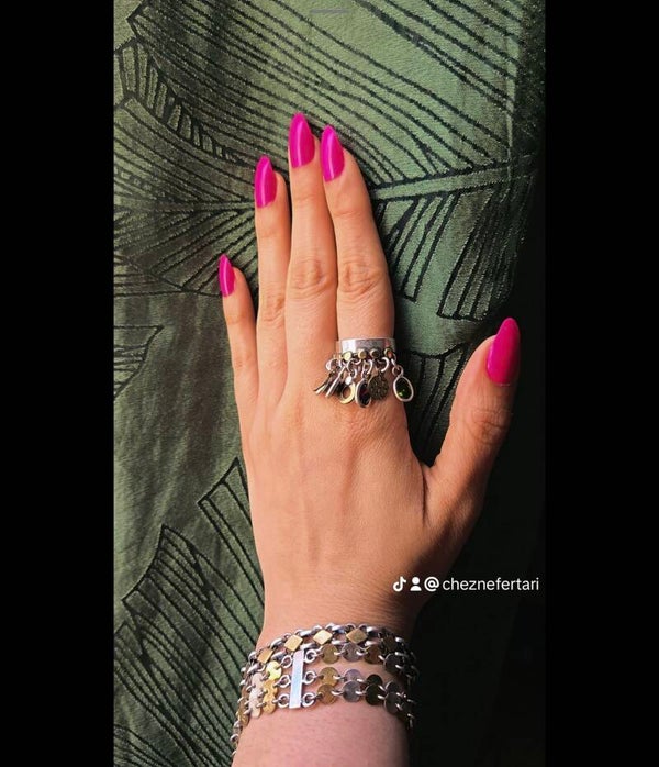 Succombez au charme unique de cette bague, une pièce maîtresse qui allie élégance et mouvement. Son design, , se compose d'un large anneau en métal argenté qui supporte une cascade de petits pendentifs. Ces disques délicats et ajourés ne se contentent pas de briller, ils tintent doucement à chaque geste, créant une mélodie discrète et enchanteresse. C'est un bijou vivant, parfait pour celles qui aiment exprimer leur style avec une touche de fantaisie et de poésie. Portez-la seule pour qu'elle attire tous les regards ou associez-la à d'autres pièces pour un look bohème chic irrésistible.