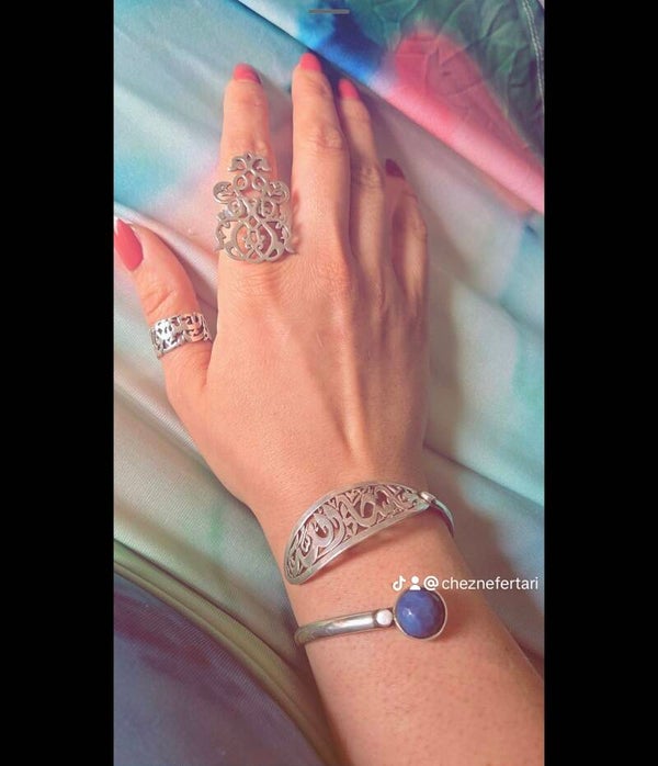 Succombez au charme délicat et raffiné de cette bague en argent, une véritable œuvre d'art à votre doigt. Son design ajouré, inspiré par la finesse des arabesques orientales, déploie un motif floral entrelacé . Les courbes et les volutes créent un jeu de lumière et de transparence qui souligne la beauté de la main.